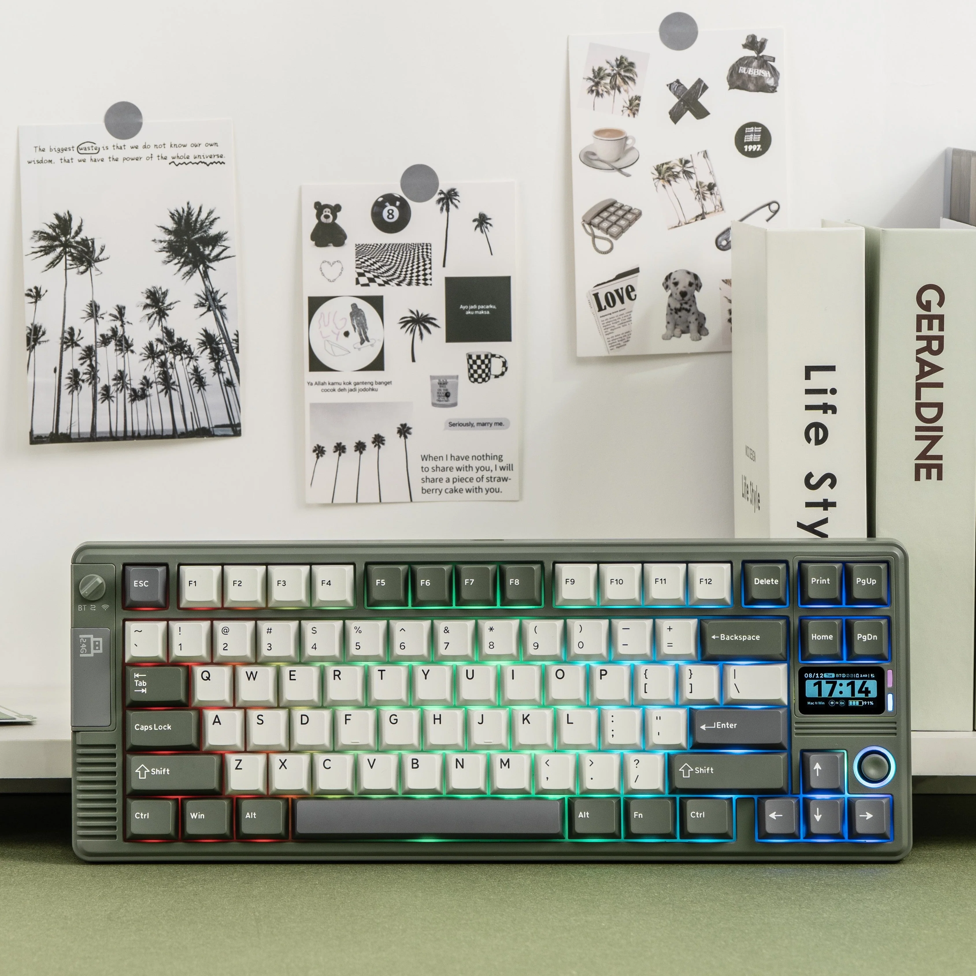 Looks classic and built to last, the RT85 gaming keyboard comes in two distinct colorways – the calming green with dark grey or retro white with grey and vibrant orange. Reminiscent of classic gaming consoles with rounded frame, screen and joystick, the addition of full RGB backlight, which shines bright thanks to south-facing per-key LEDs, adds a touch of modern functionality to the retro-inspired setup. Not just a looker, the 1kg solid weight speaks volumes about its robust, premium construction, ensuring it stays firmly in place even during intense gaming sessions, while the double-shot PBT keycaps guarantee no greasy shine over time with clearly visible characters.