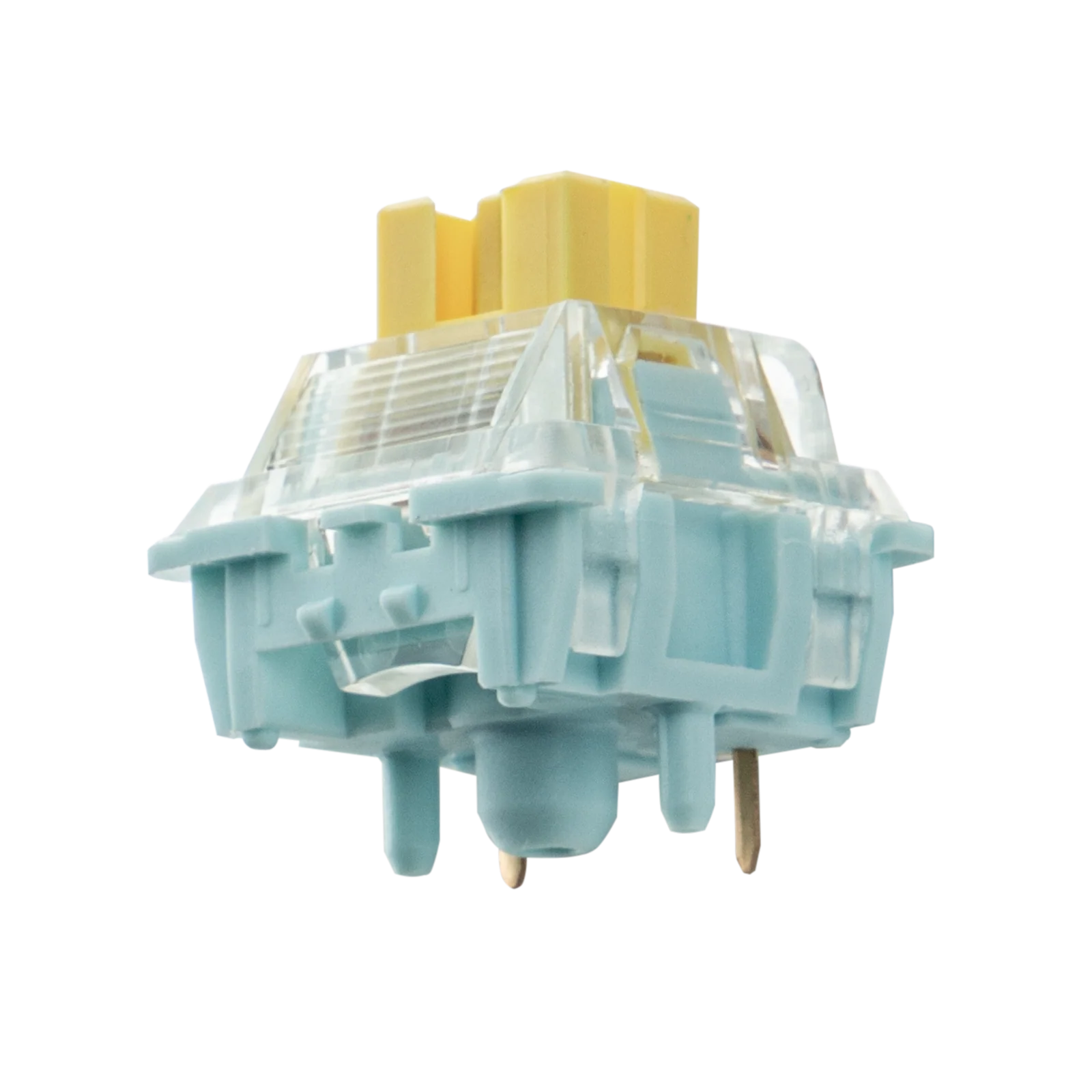 Featuring a light blue PA66 bottom housing elegantly paired with a transparent PC top cover, complemented by a cream-yellow POM stem and a built-in light diffuser. The combination of the cream-yellow POM stem and transparent PC top cover delivers gentle light diffusion, ensuring each key’s backlight emits pure, consistent color saturation. Whether you’re pulling late-night work sessions or in a shared office environment, the soft yet clear, non-glaring backlight significantly reduces eye strain—making every keystroke accompanied by a comfortable light experience.